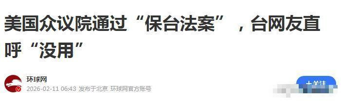 2月9日,美国国会众议院以压倒性优势通过了涉台法案,高调宣称将把中国排除出国际金融体系以示惩戒。